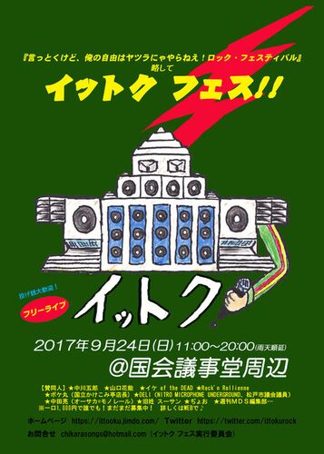 2017年9月25日配信(予定)のメルマガ金原.No.2946を転載します。 なお、「弁護士・金原徹雄のブログ」にも同内容で掲載しています。 「イットク フェス!!」(2017年9月24日)~みんなが自由に楽しむことが、自由を奪おうとするヤツラへの最大の抵抗! 「安…