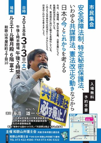 2018年1月26日配信(予定)のメルマガ金原.No.3059を転載します。 海渡雄一弁護士と考える「日本の今とこれから」~和歌山弁護士会市民集会(2018年3月3日)のご案内 今日のブログのタイトルをどうすべきか、私は一瞬悩みました。 今日は、来る3月3日(土…
