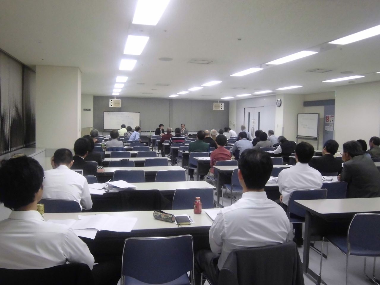 なお、後半は、いつものように質疑応答タイムでした。昨晩は、講演が予定より長引いたため、質疑応答の時間は約50分でした(いつもは1時間以上やっている)。もっとも、昨日はいつもより参加者が少なめ(40人余り)でしたので、この程度の質疑応答時間でちょうど良かったのですが。後半では、前半の講師・海堀崇会員に加え、回答者として畑純一元支部長(司法修習44期)が加わりました。