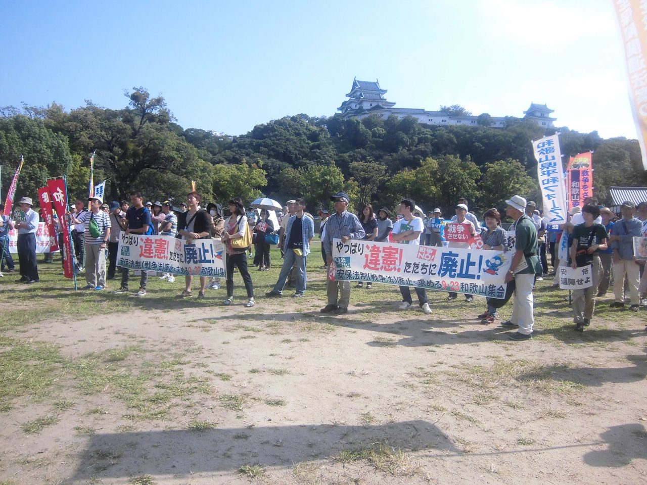 開催を正式に発表したのが連休直前であり、かつ参議院本会議採決の10数時間前の9月18日(金)午前中という間際であり、実質的に広報期間がほぼゼロに近い中で開催された今日の和歌山城西の丸